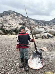 This tusk was the first catch of the 12 year old son of the hunter we purchased it from. It was harvested near Qikiqtaaluk, or White Island, Nunavut, Canada.